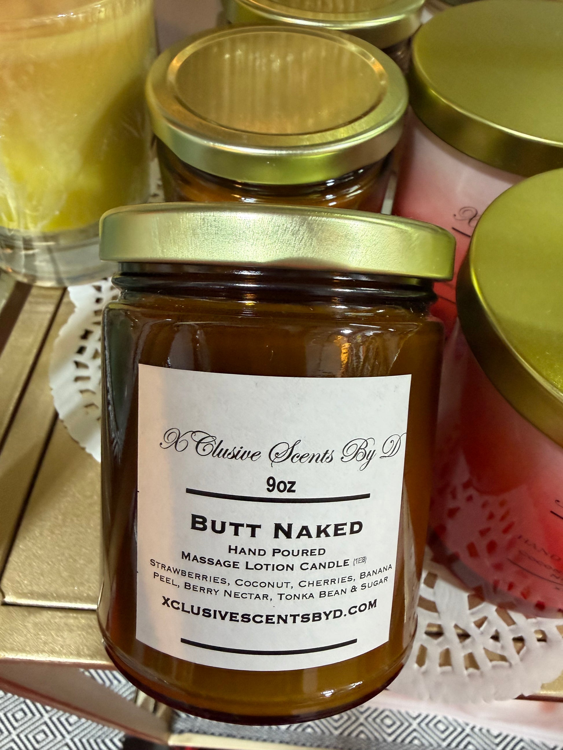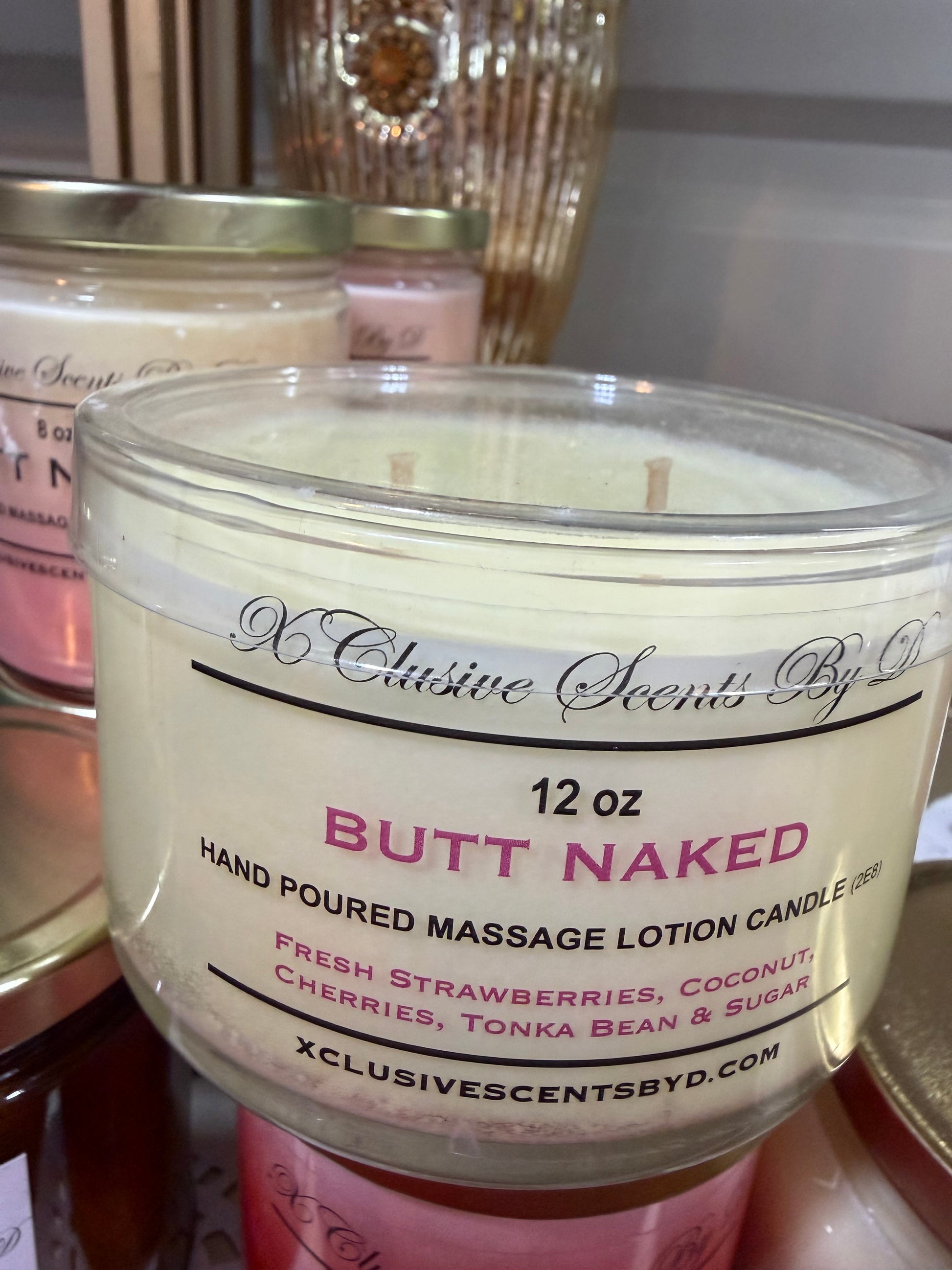 Hand poured small batch massage lotion candles! Yes! once melted, carefully scoop melted was on exterior body for a scented lotion experience!